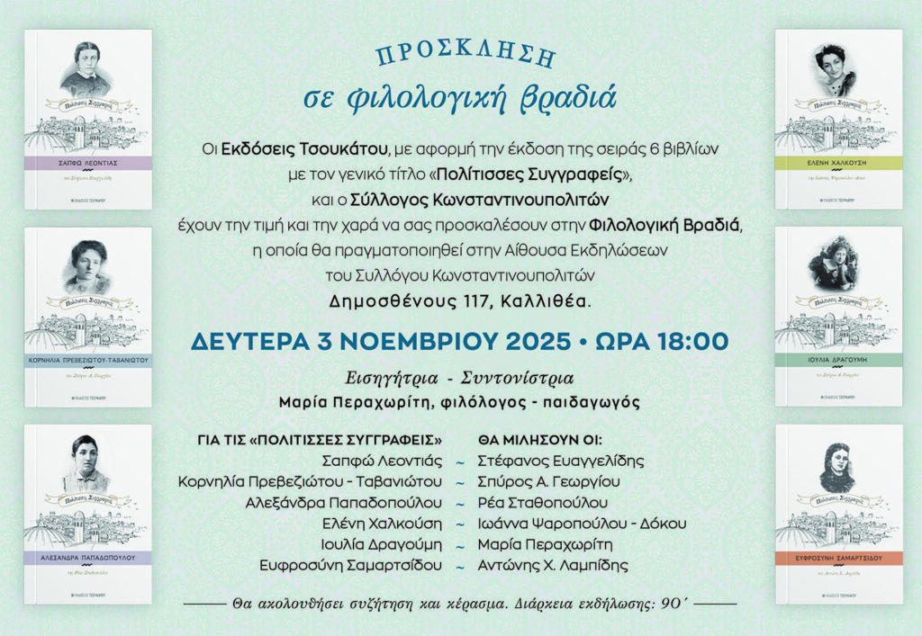 ΠΡΟΣΚΛΗΣΗ ΣΕ ΦΙΛΟΛΟΓΙΚΗ ΒΡΑΔΙΑ – ΔΕΥΤΕΡΑ 3 ΝΟΕΜΒΡΙΟΥ 2025