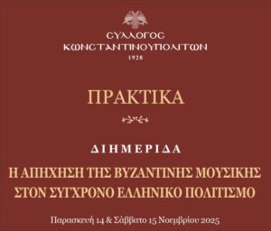 - ΠΡΑΚΤΙΚΑ ΔΙΗΜΕΡΙΔΑΣ “Η ΑΠΗΧΗΣΗ ΤΗΣ ΒΥΖΑΝΤΙΝΗΣ ΜΟΥΣΙΚΗΣ ΣΤΟΝ ΣΥΓΧΡΟΝΟ ΕΛΛΗΝΙΚΟ ΠΟΛΙΤΙΣΜΟ – ΨΗΦΙΑΚΗ ΕΚΔΟΣΗ 27 Φεβρουαρίου 2026